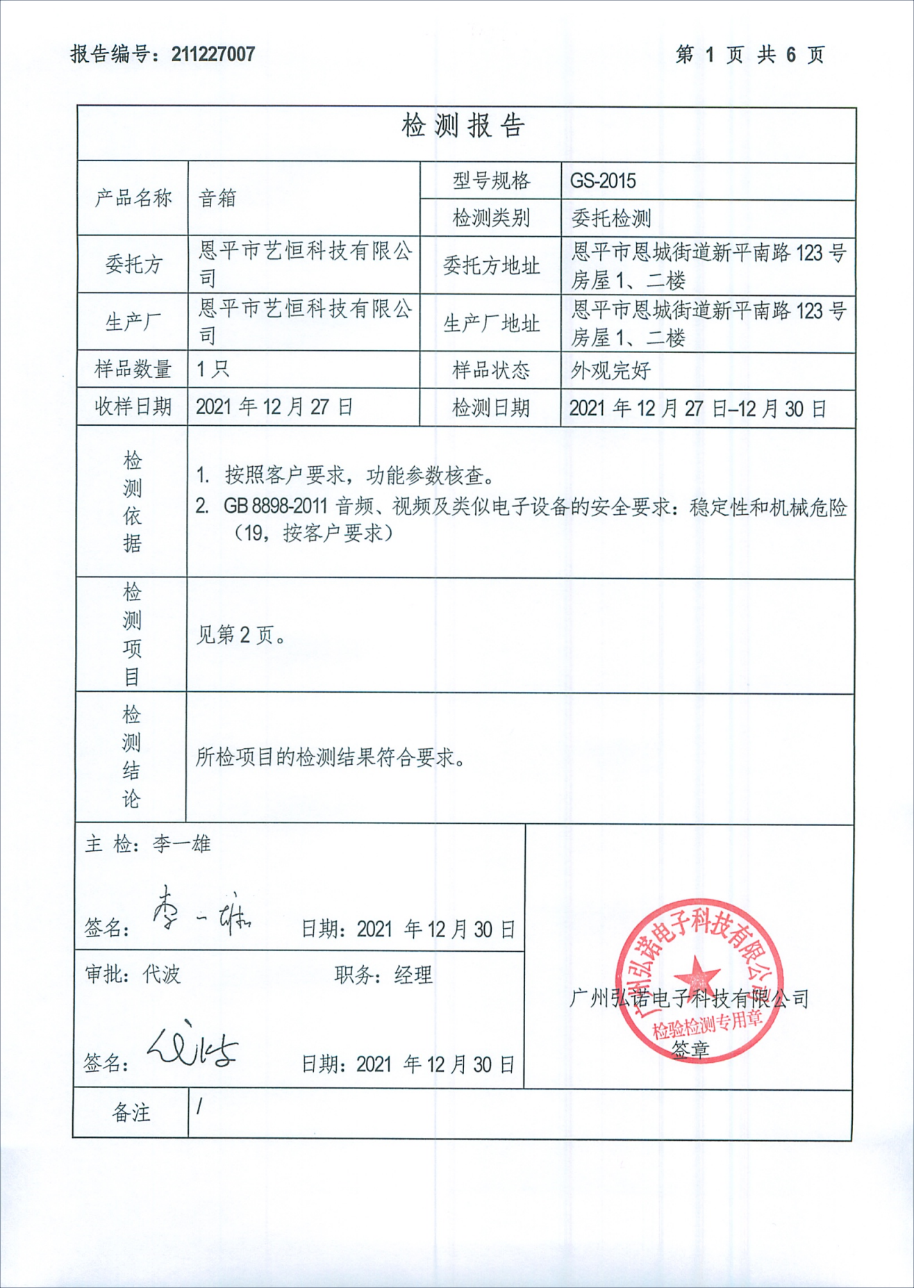 音箱检测报告